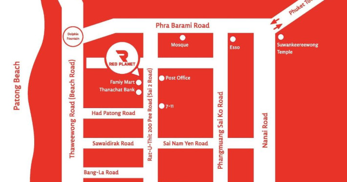 Red Planet Patong, Phuket este la 10 km de plaja Karon si la 20 km de Phuket Fantasea. Acvariul din Phuket si Capul Promthep se află la 30 km de proprietate.