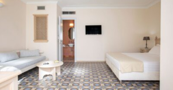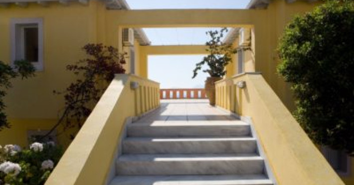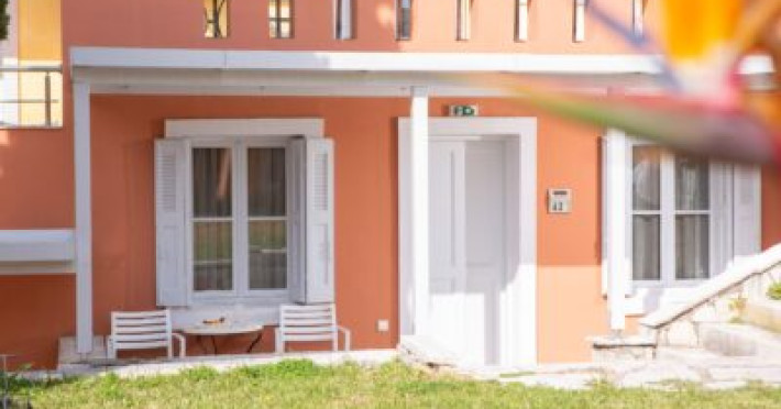Un castel cu turnuri si fortarete in nuante calde de rosu si ocru, va intampina intr-un mediu prietenos pentru a va oferi o vacanta de poveste. Este construit in stilul traditional ionian in culori calde care se armonizeaza cu peisajul inconjurator si alei din piatra care va ghideaza prin hotel oferindu-va senzatia ca va aflati intr-un sat de munte traditional.Localizare