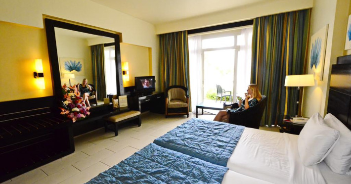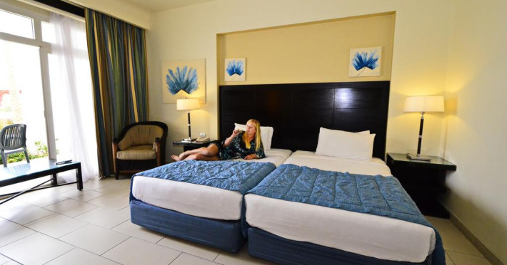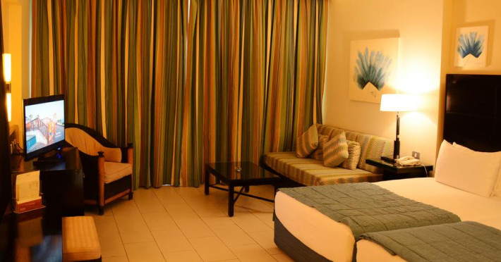 În camere există baie cu cadă sau duș prevăzută cu foehn. Camerele confortabile de la Reef Oasis Blue Bay Resort au pardoseală de gresie/ marmură, aer condiționat, Tv cu canale prin satelit și seif. Fiecare cameră dispune de minibar și cană-fierbător. Oaspeții pot solicita serviciul de room service pentru a servi masa sau diverse băuturi. Unele camere au balcon cu vedere la grădină sau la piscină. Curățenia in cameră se face zilnic. Toate camerele spațioase de la Reef Oasis Blue Bay Resort au zonă de relaxare. Proprietatea oferă camere pentru familie cu o suprafață mai mare și un număr mai mare de paturi față de cele standard.