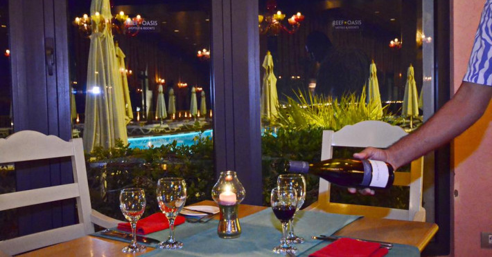 La Reef Oasis Blue Bay Resort oaspeții au la dispoziție un restaurant care servește mâncare în stil bufet și à la carte. Preparate din bucătăria internațională așteaptă să fie degustate în fiecare zi la micul dejun, prânz și cină. Masa poate fi servită atât în interior, cît si în aer liber, pe terasă, în funcție de vreme. Oaspeţii pot avea diverse băuturi răcoritoare sau alcoolice la bar. În cadrul proprietății există și un snack bar care servește băuturi și gustări.