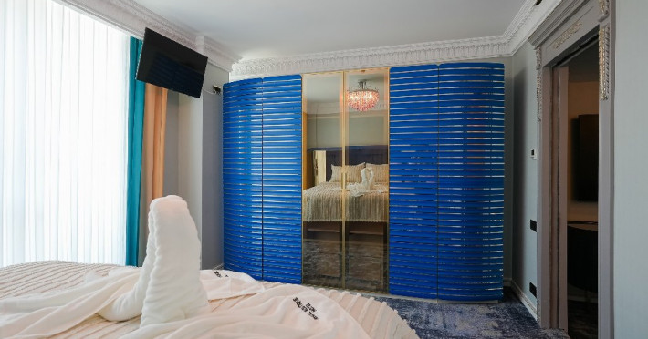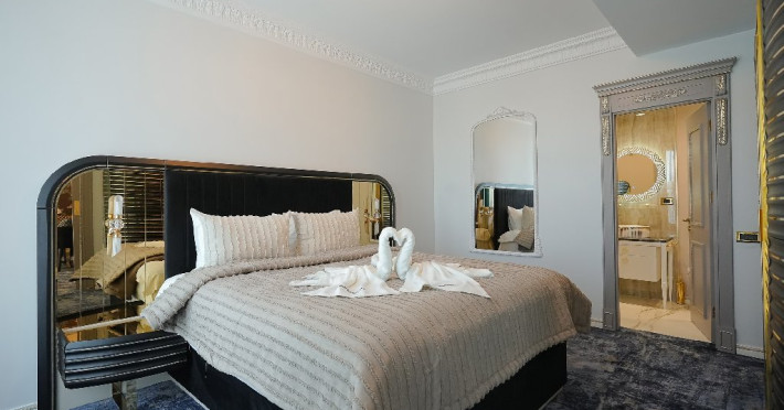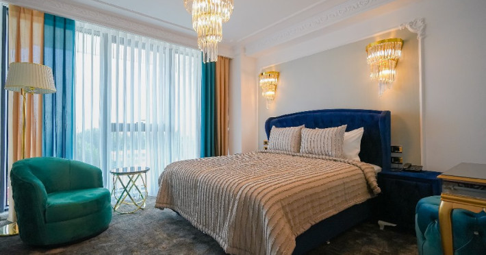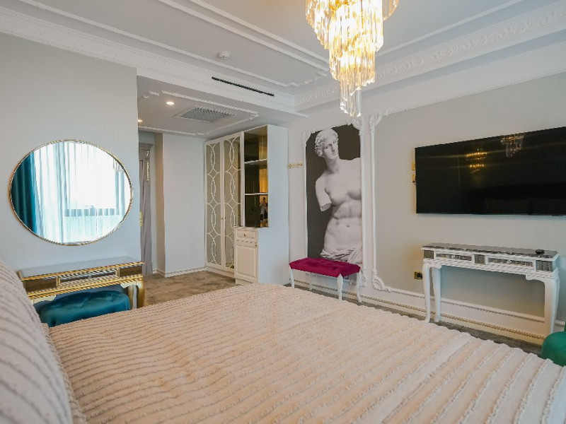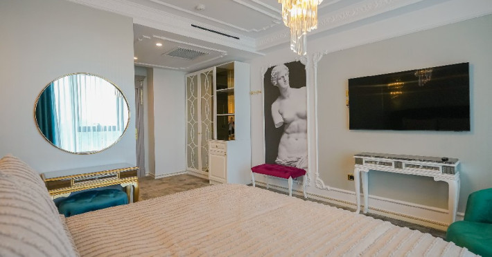 - camera matrimoniala: este potrivita pentru un cuplu care doreste sa petreaca un sejur de vis intr-un spatiu arhitectural luxuriant si elegant. Este spatiul perfect pentru a completa o vacanta regala, la malul marii, in care va veti rasfata si va veti bucura de un sejur care exprima lux si libertate pana la cel mai fin detaliu. Camera este prevazuta cu o cona de dining, unde va puteti bucura de o masa intima, alaturi de persoana iubita.