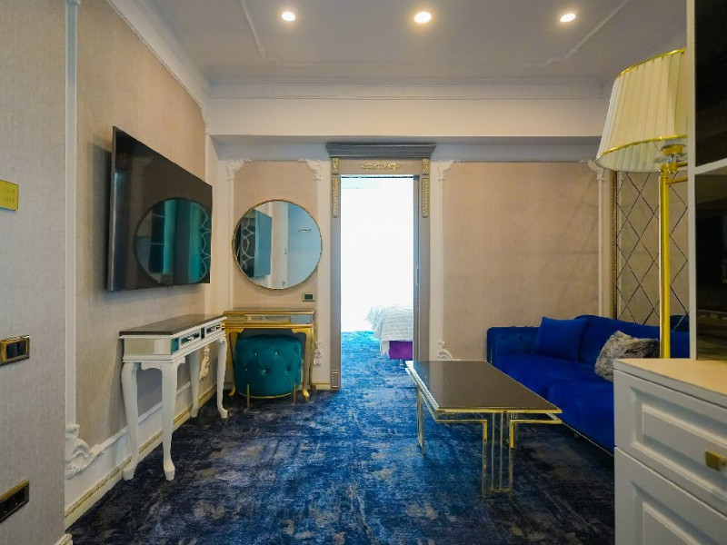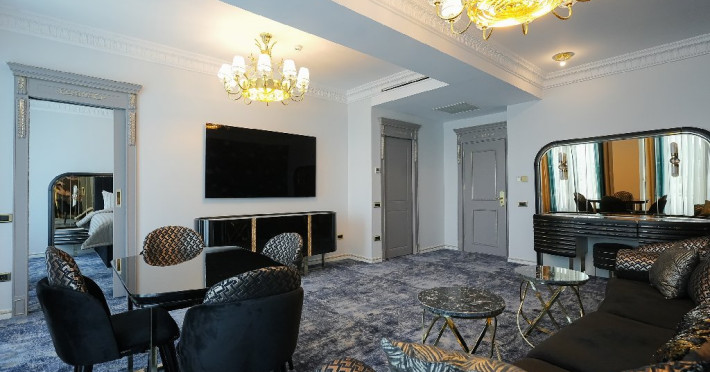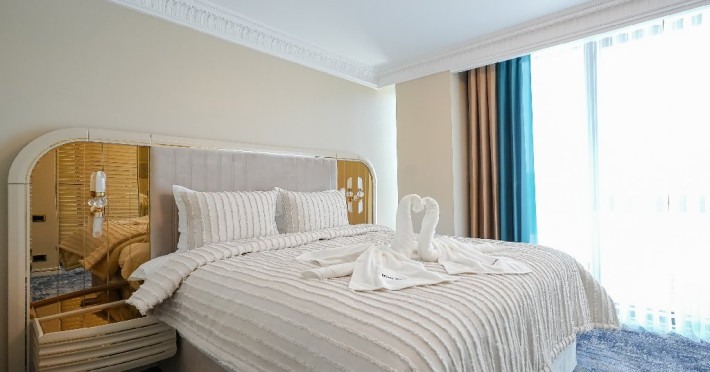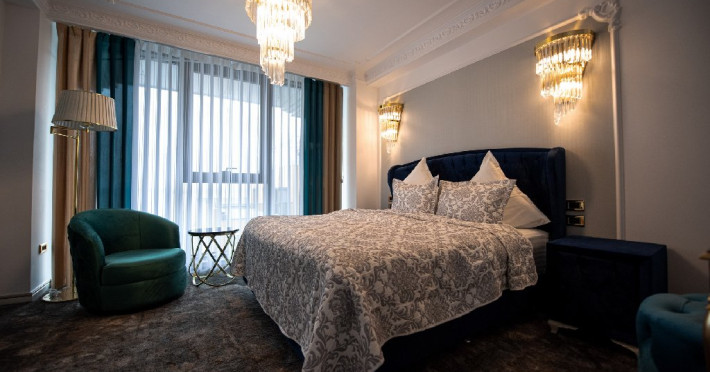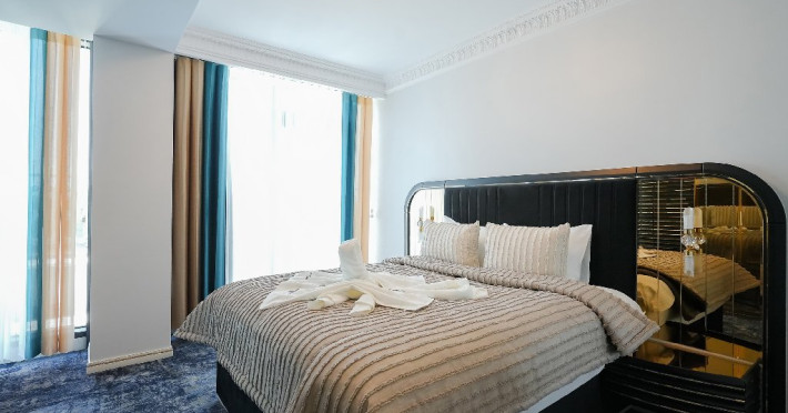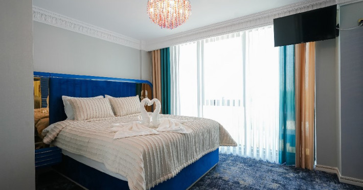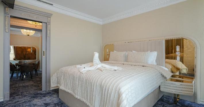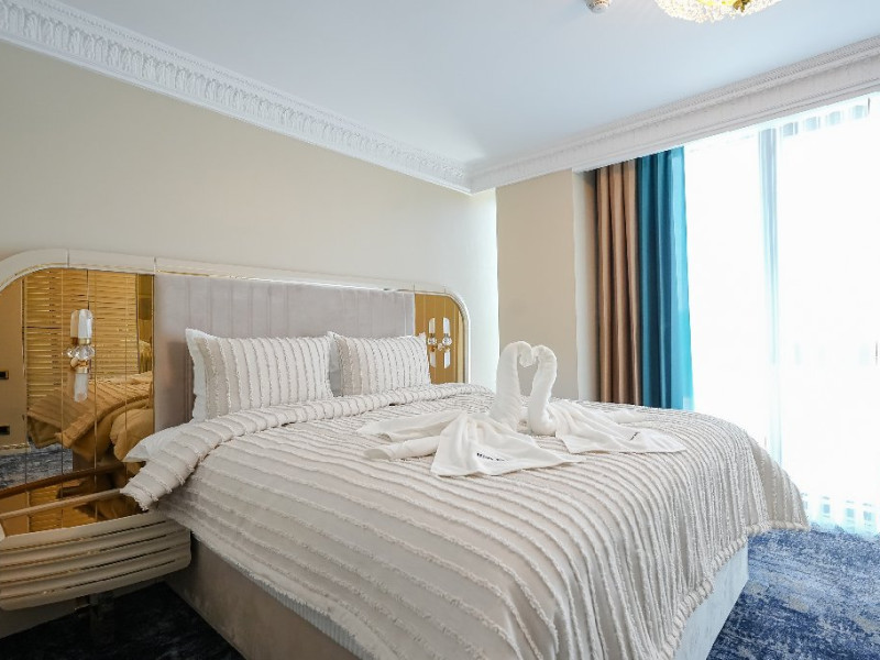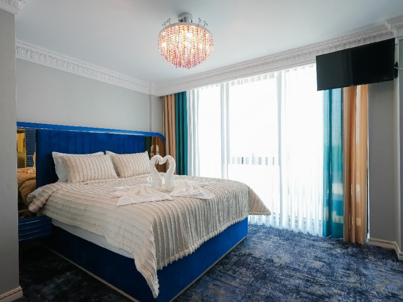 - apartament family: este potrivit pentru acele perechi care doresc sa aiba parte de un sejur ce defineste splendoarea, fiind cadrul perfect pentru o luna de miere de poveste. Adevaratele povesti de dragoste nu au final, motiv pentru care apartamentul family este perfect pentru cupluri, fie ca doriti sa sarbatoriti luna de miere sau sa creati noi amintiri alaturi de persoana iubita. Apartamentul respira lux prin fiecare detaliu, tocmai de aceea dorim sa va oferim aceasta experienta completa si unica. Livingul spatios reprezinta un loc ideal pentru relaxare, unde puteti savura o sampanie fina, servita din minibar. Va puteti rasfata in confortul propriei camere cu un hidromasaj , iar designul dormitorului va va asigura confortul unor nopti regale. Veti avea parte de seri de vara de vis pe terasa cu vedere la mare sau lac , unde apusul si rasaritul pot fi admirate in doi.