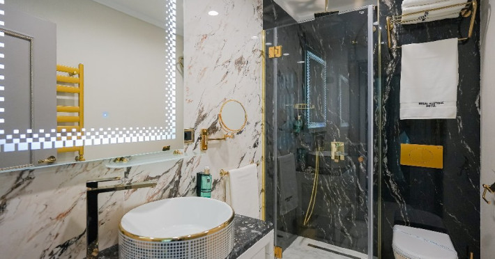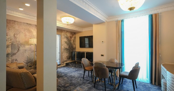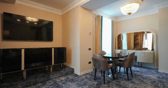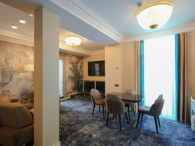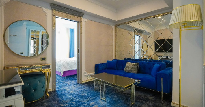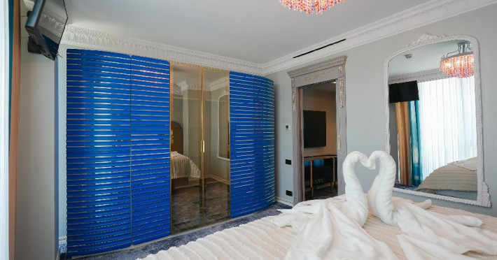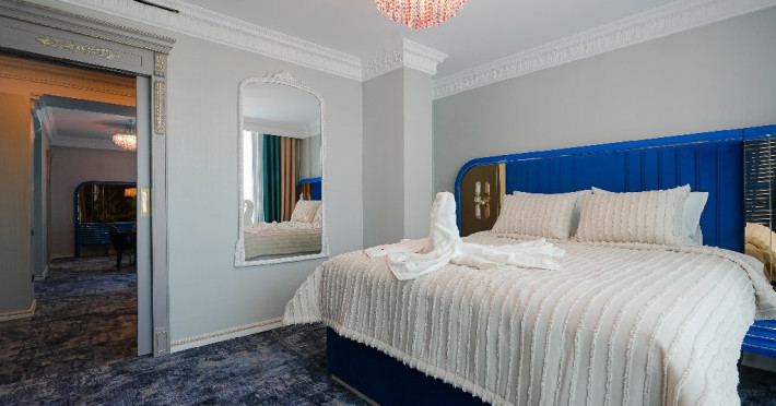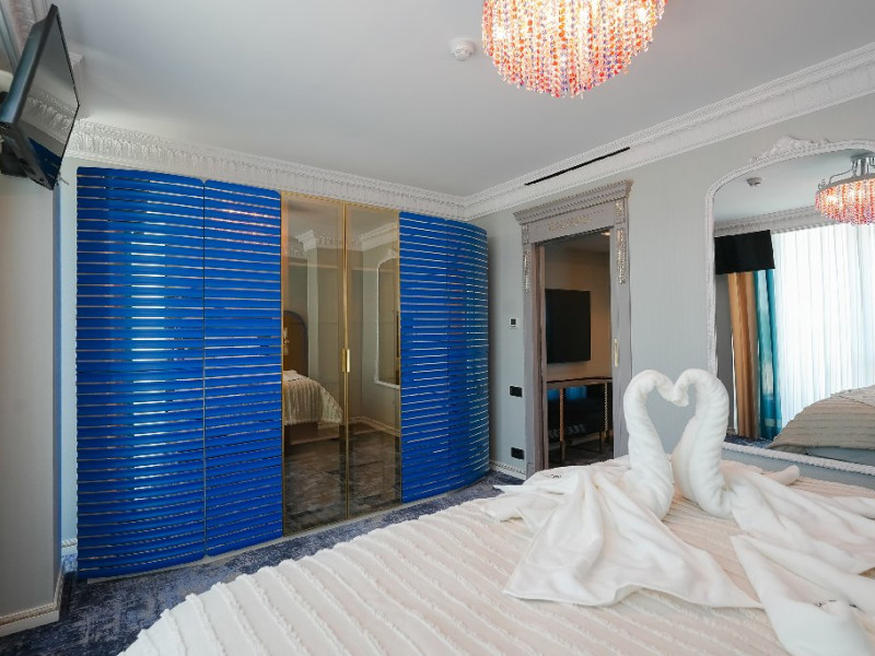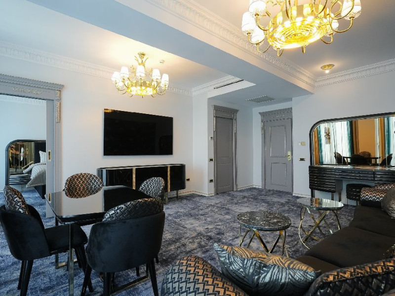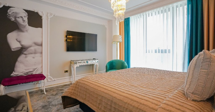 - apartament family: este potrivit pentru acele perechi care doresc sa aiba parte de un sejur ce defineste splendoarea, fiind cadrul perfect pentru o luna de miere de poveste. Adevaratele povesti de dragoste nu au final, motiv pentru care apartamentul family este perfect pentru cupluri, fie ca doriti sa sarbatoriti luna de miere sau sa creati noi amintiri alaturi de persoana iubita. Apartamentul respira lux prin fiecare detaliu, tocmai de aceea dorim sa va oferim aceasta experienta completa si unica. Livingul spatios reprezinta un loc ideal pentru relaxare, unde puteti savura o sampanie fina, servita din minibar. Va puteti rasfata in confortul propriei camere cu un hidromasaj , iar designul dormitorului va va asigura confortul unor nopti regale. Veti avea parte de seri de vara de vis pe terasa cu vedere la mare sau lac , unde apusul si rasaritul pot fi admirate in doi.