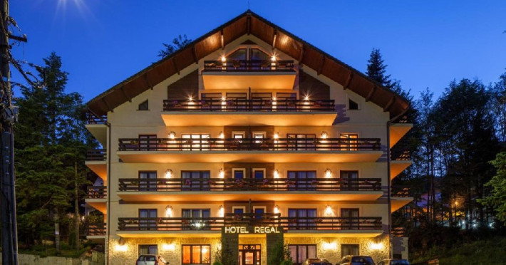 Situat in Sinaia, pe drumul catre Cota 1400, Hotel Regal ofera ambientul ideal pentru un sejur de relaxare si recreere si o gama larga de servicii de calitate ce satisfac cele mai exigente cerinte, atat ale turistilor veniti aici pentru odihna, cat si in interes de afaceri.Aflat la aproximativ 800 de metri de Castelul Peles, Castelul Pelisor si Castelul Stirbei, Hotel Regal din Sinaia isi poarta oaspetii intr-o calatorie regala. Arhitectura Hotelului Regal invita la relaxare iar serviciile se ridica la inaltimea exigentelor clientilor nostri.
