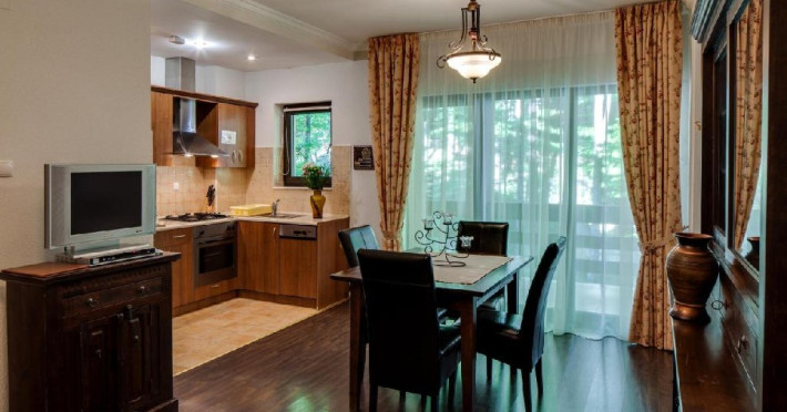 Apartament standard: Cu o suprafata de 50 mp, acest tip de apartament dispune de un dormitor, un living cu o canapea extensibila si TV-LCD, o bucatarie americana complet utilata, o baie cu Jacuzzi, doua balcoane si Internet Wireless. Apartamentele Standard sunt ideale pentru cei care vin in Sinaia in interes de serviciu sau pentru cei care cauta linistea oferita de aceasta zona.