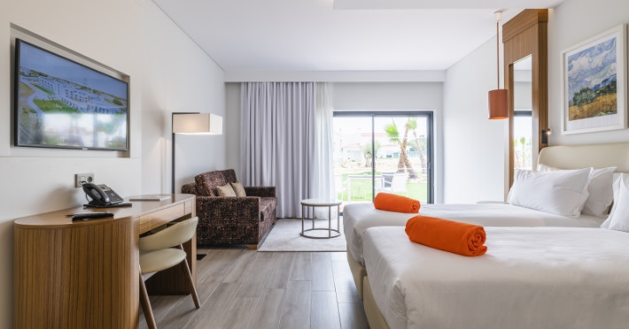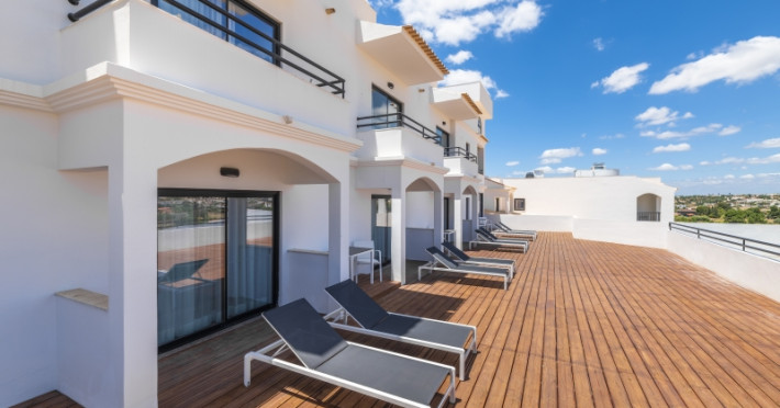 In the vicinity of the public sandy beach and approximately 350 m from the sea lies the hotel Regency Salgados Hotel & Spa. The old town is around 10 km away. The nearest shops you can reach within around 4 km, a supermarket is around 1 km away. The beach is awarded a blue flag. Here, there are cushions for a fee as well as beach towels available. To reach the beach a shuttle is provided. The air-conditioned hotel is equipped with a 24h reception (check-in is possible around the clock), a lobby bar, Wi-Fi, internet access, a lift, a first aid kit, parking spaces (limited) as well as a TV lounge with satellite TV. In the outdoor area you will find a garden as well as a pool (open all year), where pool towels are available for free. For children there is also a children's pool. Furthermore, outside you can find a terrace. You can store your valuables in the safe (extra fee), and your luggage in the hotel`s storage room. In addition, the hotel Regency Salgados Hotel & Spa is video-monitored 24h a day. For very young guests, cots can also be provided. There is also a laundry service. Ironing equipment can be borrowed at the hotel. If necessary, you can contact the medical centre at any time. If you want to explore the holiday region, you can use the car and motorbike rental service close to the hotel (extra fee). At the hotel reception, tickets are offered for excursions in the area. For guests on their honeymoon, the hotel has special offers such as a romantically-decorated room, personalised rooms/articles, rooms with a particularly romantic location and view, special honeymoon packages, romantic dishes in the restaurant, sparkling wine or a present in the room. In your hotel, a lot of focus is placed on sustainability. This includes the hotel`s own recycling bins, the provision of soap and shampoo dispensers, organic food and ecological meals and environmentally-friendly cleaning. The hotel requires that all guests pay a deposit upon arrival. Euro/Master Card is accepted as means of payment. Due to its barrier-free facilities , such as an automatic hotel door, barrier-free entrances, wheelchair accessible rooms, a wheelchair accessible lift, a handrail in the elevator and wheelchair-accessible bathrooms, the hotel is also suitable for wheelchair users. Catering As catering services the hotel offers half board. Breakfast is offered from the buffet. Dinner is served as a set meal or à la carte. Half board plus includes selected imported spirits (limited). For the meals, there are a restaurant and the pool bar. Distances
