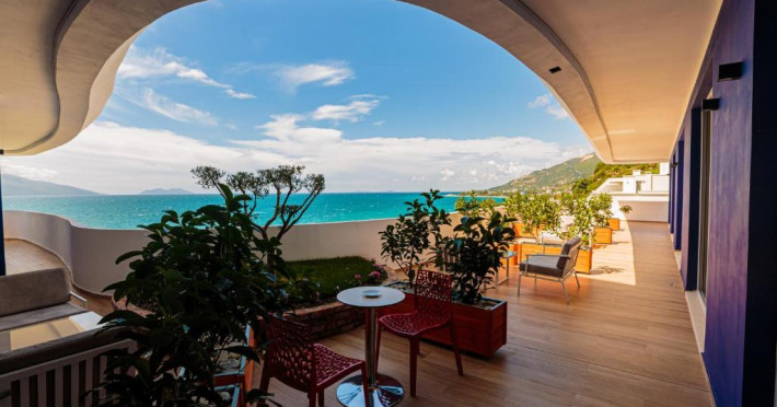 Această proprietate este la 1 minut pe jos față de plajă. Avand o locatie pe deal cu vedere la Marea Ionică, Regina oferă o plajă privată de-a lungul golfului Vlora, aflat la doar cativa metri. Oaspetii se pot relaxa pe balcoanele panoramice sau pe terasa mare cu sezlonguri si umbrele de soare.
