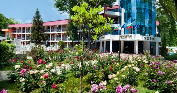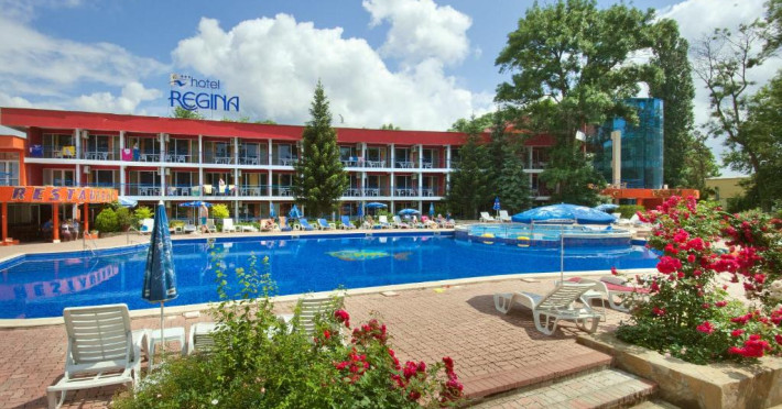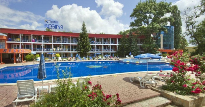 Hotelul Regina se află la 50 de metri de plajă si de statia autobuzului care face legătura cu statiunile Burgas si Nessebar. Personalul vă stă la dispozitie 24 de ore pe zi. Hotelul oferă un serviciu de inchirieri auto, precum si o parcare privată.