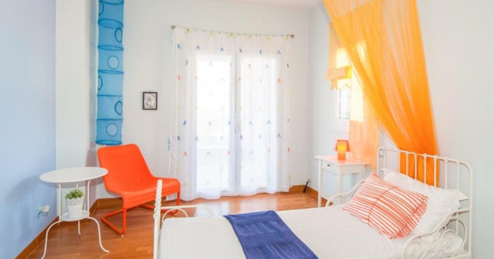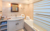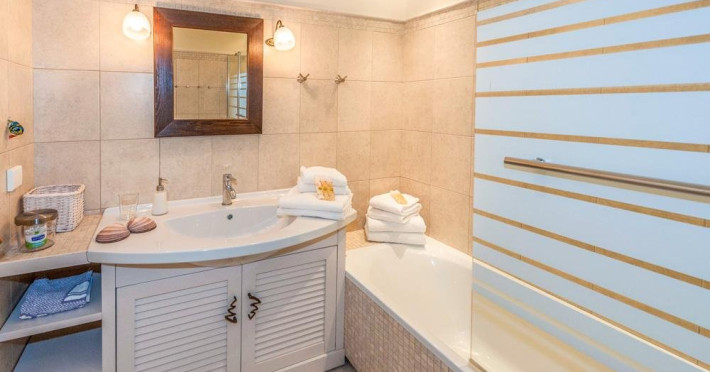 2 dormitoare (unul cu pat matrimonial, celalat cu 2 paturi twin) ce impart aceasi baie cu cada
