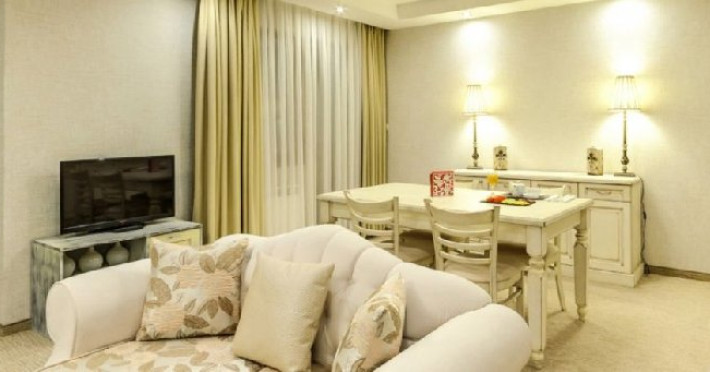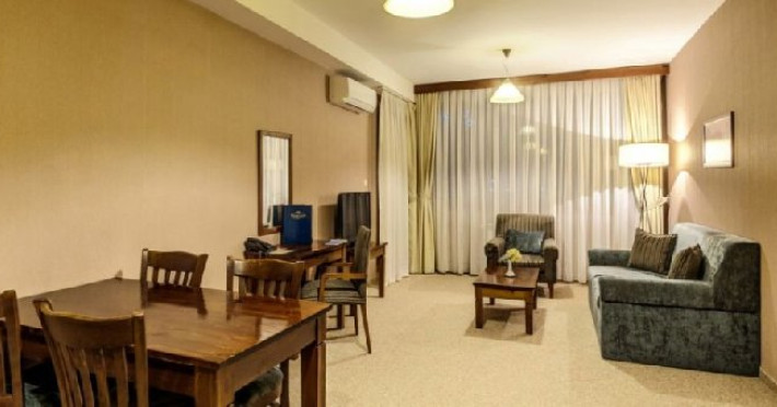 Junior Suite: capacitatea maxima de cazare este de 2 adulti. Junior Suite este o camera spatioasa cu pat dublu sau paturi twin, birou, baie cu cabina de dus sau cada, seif personal, mini-bar, TV cu ecran plat, ceainic.