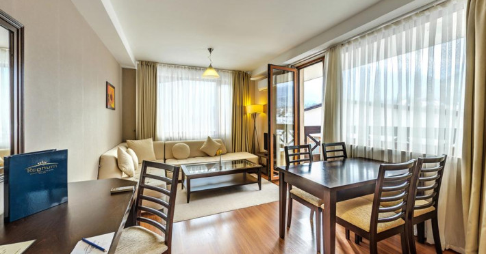 Situată în Bansko, această proprietate de 5 stele oferă piscină interioară, piscină în aer liber, cu șezlonguri și umbrele de soare, precum și centru spa/ wellness care asigură servicii pentru un sejur extrem de relaxant. Facilitățile de la Regnum Bansko Apart Hotel & Spa includ sală de fitness și business center. Pentru petrecerea timpului liber oaspeții au la dispoziție activități de agrement pe timpul zilei și programe de divertisment seara. Proprietatea are, de asemenea, servicii de recepție cu program non - stop și închirieri auto. Se oferă acces gratuit la internet Wi-fi în spațiile publice.