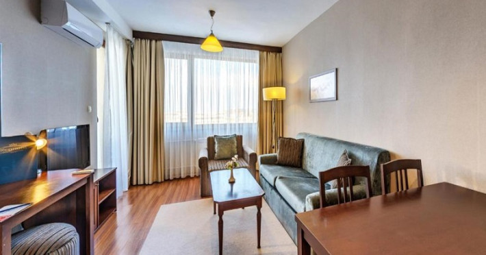 Spatioase si luminoase, suitele executive deluxe mountain view ofera vedere catre Muntii Pirin, sunt alcatuite din living si un dormitor si dispun de urmatoarele dotari: wi-fi gratuit, aer conditionat, TV LCD, telefon, mini-bar (contra-cost), chicineta, seif, uscator de par, halate de baie, balcon (la cerere si contra-cost). Capacitate: 2+2 / 3 (50-70 mp).