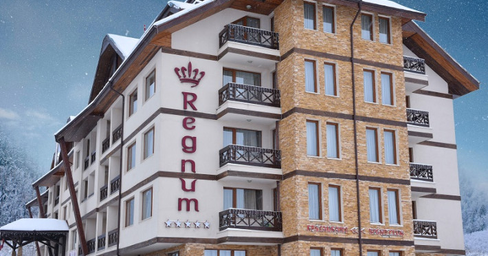 Regnum Bansko Ski Hotel & Spa este un hotel de 5* situat in frumoasa statiune muntana Bansko, la numai 600 m de telecabina. Este inconjurat de un peisaj de poveste cu privelisti superbe asupra statiunii Bansko si Muntilor Pirin.Facilitati camere