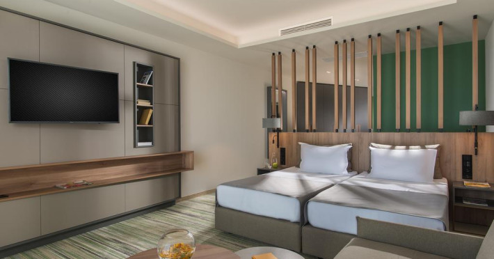 Toate camerele sunt dotate cu: aer conditionat, baie cu dus, uscator de par, cosmetice de baie premium, TV LCD satelit, telefon, mini bar, seif (contra cost), conexiune internet Wi-Fi (gratuit), balcon.