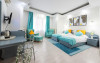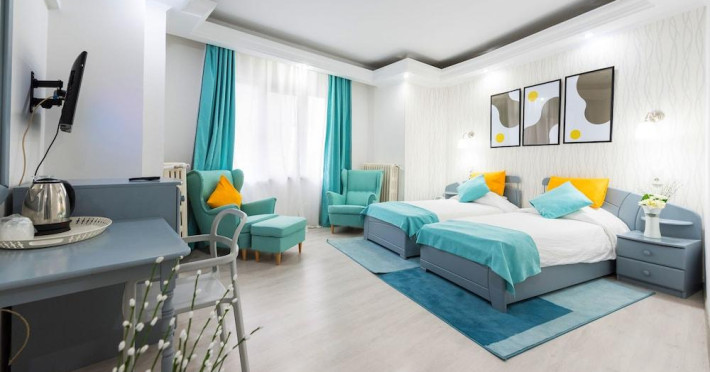 Centraly located, in the heart of town close to all bars and restaurants. Excellent location.Medium in size, well decorated and furnished in a modern style. bathrooms are also medium in size, well decorated and painted in light colours.Located in the ground floor. Well decorated and furnished in a modern style.Purpose built blockMedium in size, well decorated and furnished with enough seating areas.Excellent product provides excellent accommodation Please note : Baby Cot can not be provided on Triple Rooms.Baby Cot can not be provided on Triple Rooms.Datorita dinamicitatii domeniului disponibilitatea ofertelor se modifica de la un moment la altul. De aceea ofertele sunt valabile in limita locurilor disponibile. Agentia nu este responsabila pentru eventualele neconcordante care pot aparea intre informatiile privind tarifele si alte detalii din site si informatiile primite in agentie. In aceste cazuri vor avea prioritate, intotdeauna, informatiile primite in agentie.