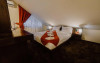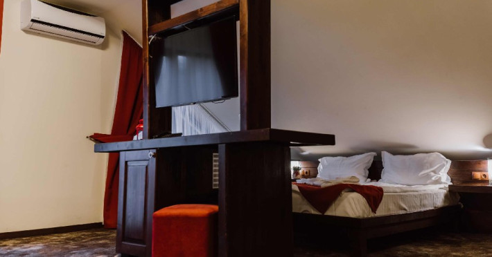 Apartamentele au o suprafata de doua ori mai mare decat camerele duble si sunt dotate cu un pat matrimonial, o canapea extensibila si 2 fotolii normale.