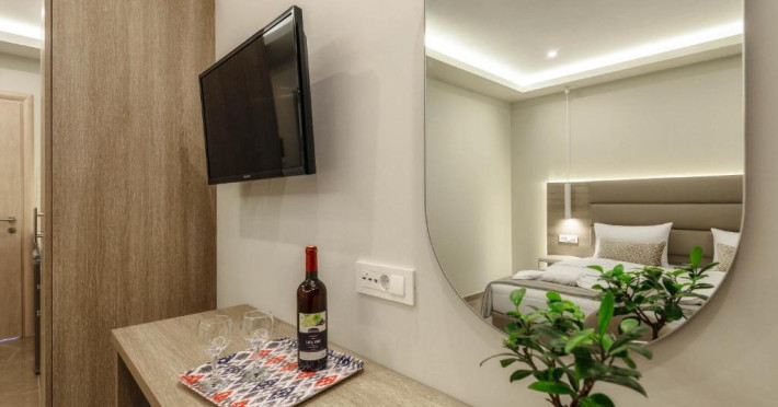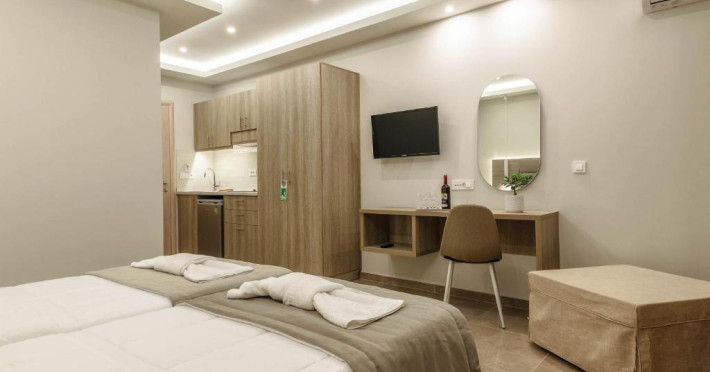 Situat in Amoudi, la 200 de metri de plaja Ammoudi, Remezzo oferă cazare cu piscină, un lounge comun și o grădină. Toate camerele au o chicinetă, un TV cu ecran plat cu canale prin satelit și o baie privată. Unitatea de cazare oferă o recepție deschisă nonstop. Proprietatea oferă mic dejun continental la un cost suplimentar. La hotel, fiecare cameră este dotată cu dulap. Camerele de la Remezzo includ aer condiționat și birou. Unitatea de cazare oferă o terasă.