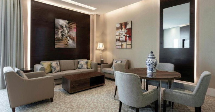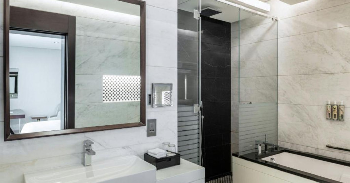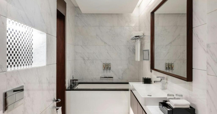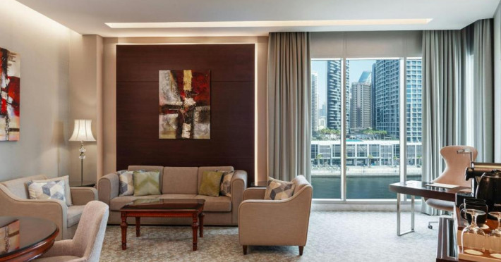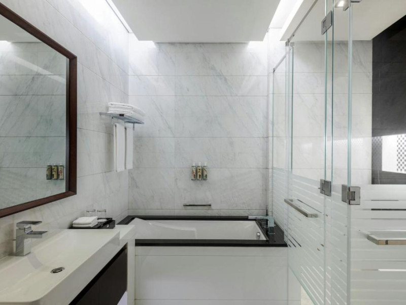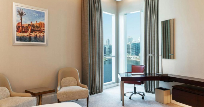 Camerele de la acest hotel includ climatizare, o zonă de relaxare, un televizor cu ecran plat cu canale prin cablu, o cutie de valori și o baie proprie cu duș, articole de toaletă gratuite și un uscător de păr. Baia proprie oferă o cadă, papuci de casă și halate de baie. La Renaissance Business Bay Hotel, Dubai, fiecare cameră este dotată cu lenjerie de pat și prosoape.