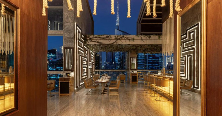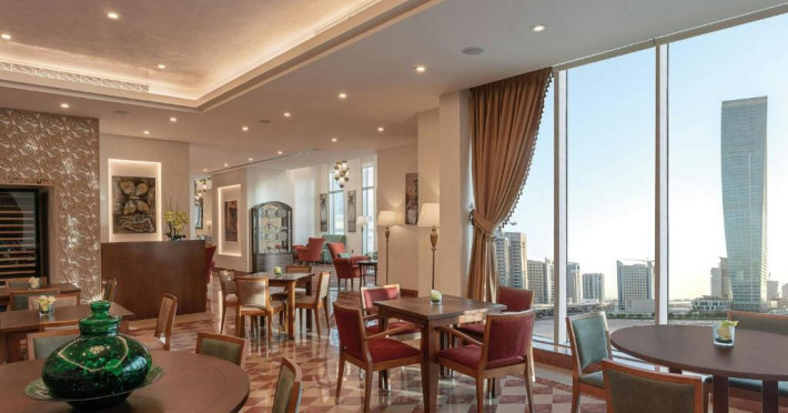 Proprietatea servește un mic dejun tip bufet, continental sau englezesc/irlandez complet. Renaissance Business Bay Hotel, Dubai are un restaurant care servește mancăruri din bucătăria italiană, mediteraneană și asiatică. La cerere, sunt disponibile și preparate vegetariene, fără lactate și halal.