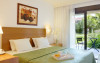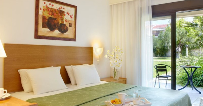 Camerele hotelului sunt dotate cu instalatie de aer conditionat, TV prin satelit, seif, chicinetele complet utilate cu plita electrica, frigider, baie proprie, iar balcoanele sau terasele sunt cu vedere la piscina sau gradina.