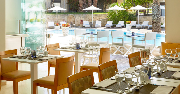 Hotelul dispune de restaurant cu terasa langa piscina, bar la piscina, piscina pentru adulti cu umbrelute si sezlonguri, piscina pentru copii, SPA (cu plata), sauna, masaj si tratamente corporale, internet, tenis de masa, muzica live, inchiriere masini.