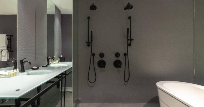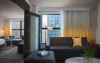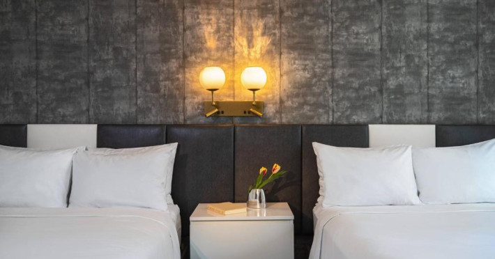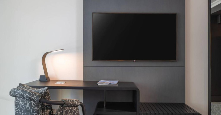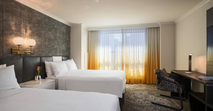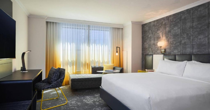 Toate camerele proprietății au lenjerie de pat și lenjerie de pat Renaissance, mobilier din lemn de culoare inchisă și accente aurii și albastre. Ferestrele din podea pană in tavan oferă oaspeților vedere la oraș. Alte facilități din cameră includ televizoare cu ecran plat cu panouri de conectare.