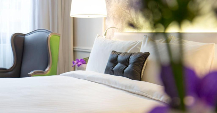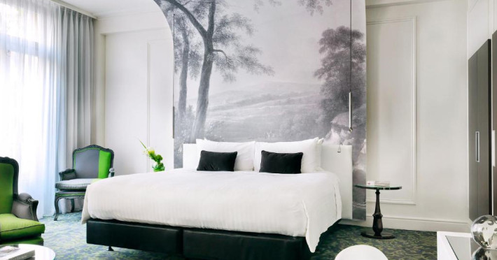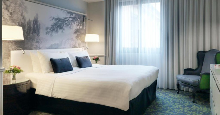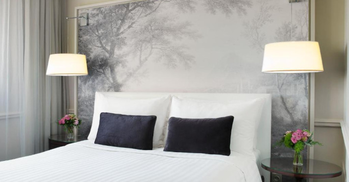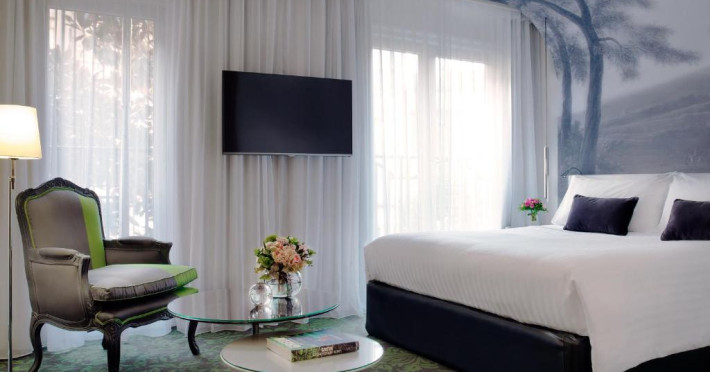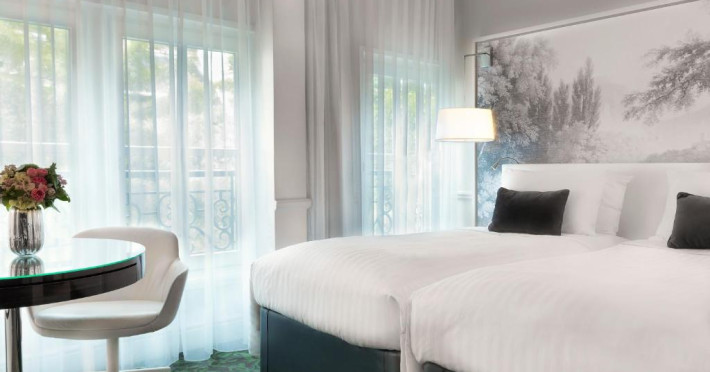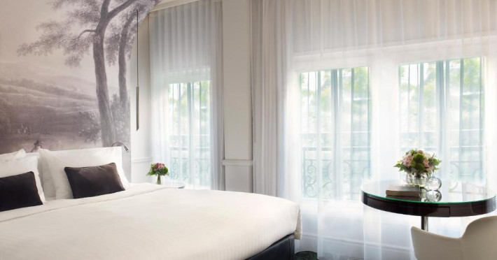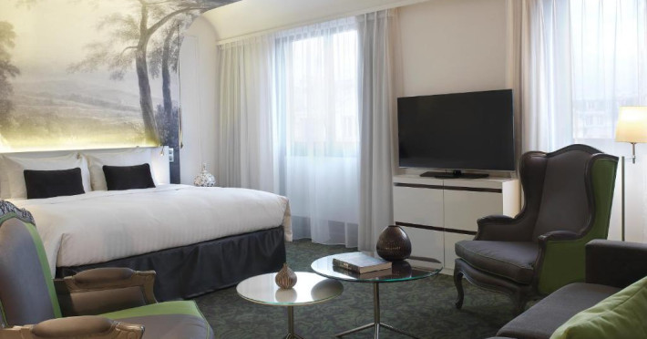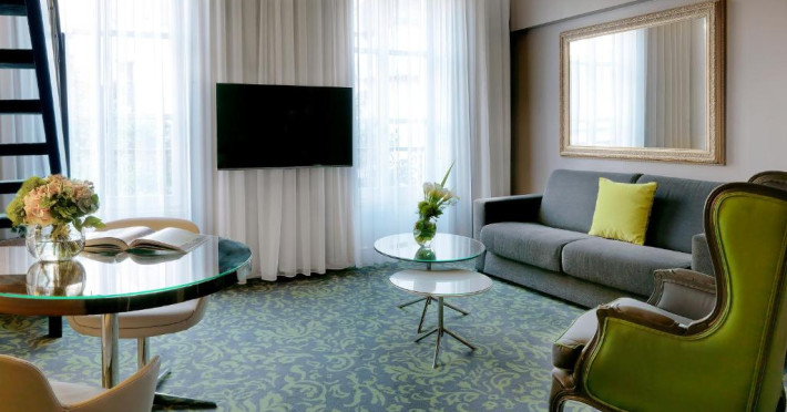 Combining a modern style and elegance, the rooms at Renaissance Paris Nobel feature in-room canopies. Overlooking the private garden or the street, all rooms all rooms are air-conditioned and offer bathrobes and slippers, a seating area and marble bathroom.