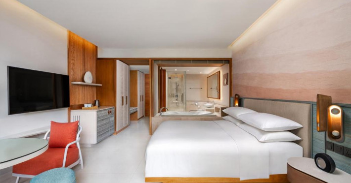 Camerele de la acest complex includ climatizare, o zonă de relaxare, un televizor cu ecran plat cu canale prin satelit, o cutie de valori și o baie proprie cu bideu, articole de toaletă gratuite și un uscător de păr. Baia proprie oferă un duș, papuci de casă și halate de baie. La Renaissance Phuket Resort & Spa, camerele au lenjerie de pat și prosoape.