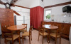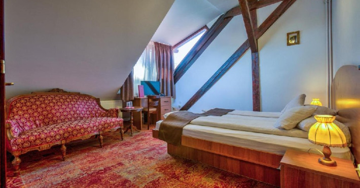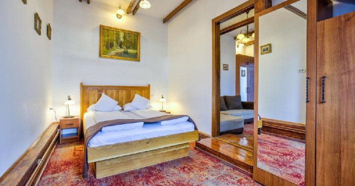 Elementele de lemn, mobilierul clasic in culori calde si decoratiunile inspirat alese creaza o atmosfera primitoare.