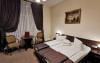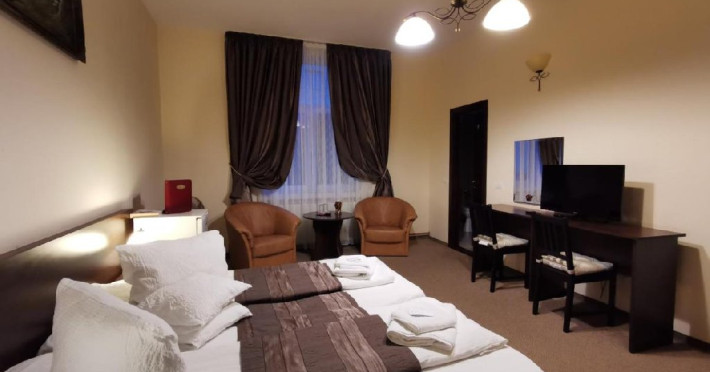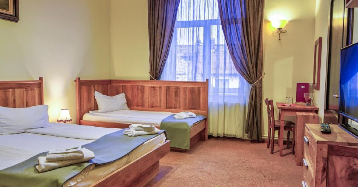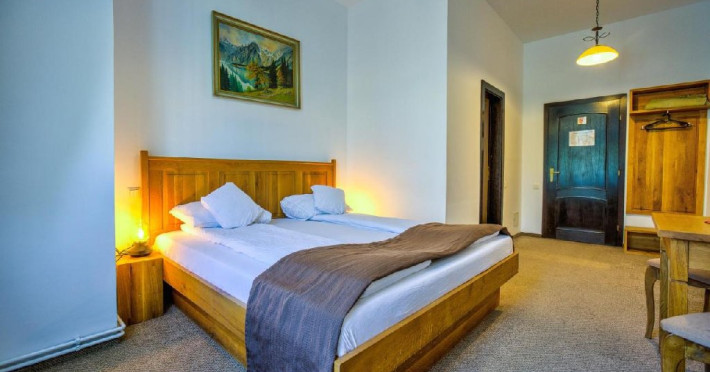 - Camere duble: au o suprafata de 18-20 mp si dispun de pat dublu/paturi twin, incalzire si ventilator, internet wi-fi, telefon intern, baie cu cabina de dus, prosoape si articole de toaleta, tv prin cablu. Camerele duble pot acomoda maxim 2 adulti.