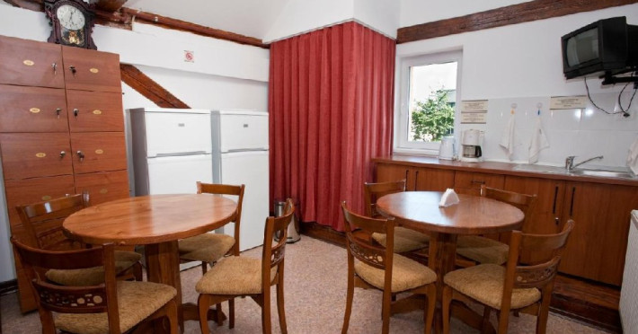 - bucatarie comuna dotata complet pentru uzul oaspetilor (frigider, plita electrica, filtru de cafea, prajitor, sandwich maker, cuptor cu microunde, vesela si tacamuri);