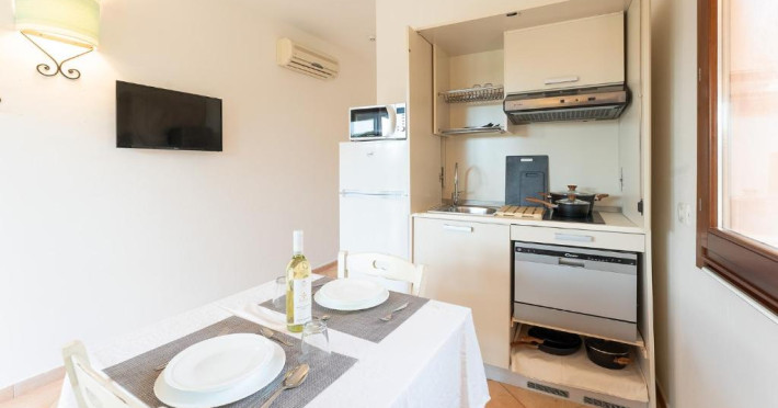 Unitățile de cazare includ un televizor cu ecran plat și o baie proprie cu bideu, duș și un uscător de păr. Chicineta are un frigider, o mașină de spălat vase și un cuptor cu microunde. Unele unități includ o terasă și/sau un patio.