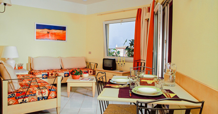 Complexul este format din apartamente cu unul sau doua dormitoare ce includ balcon sau terasa, dus, frigider, ventilator, televizor, telefon, chicineta, cuptor cu microunde, masina de spalat vasele, kit de curatenie. Toate apartamentele au lenjerie de pat schimbata înainte de check-in, un prosop de maini si unul de baie per persoana, iar curatenia se face în zona chicinetei, în restul apartamentului fiind contra cost. Apartamentele de la etaj nu sunt recomandate copiilor sub 6 ani.