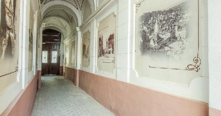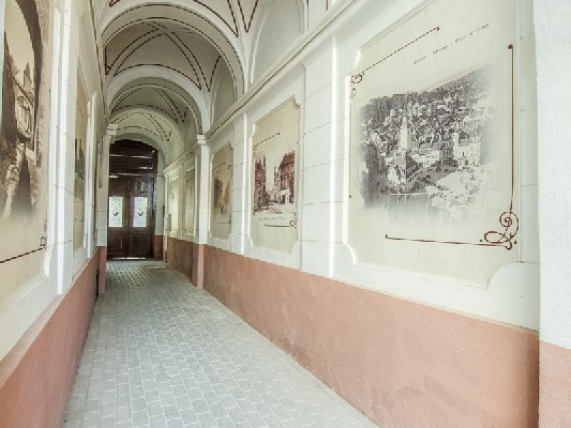 In holul din intrarea in cladire se pot vedea pasaje din istoria Brasovului din perioada Art Noveau (Jugendstil) care confirma autenticitatea si unicitatea acestei cladiri.