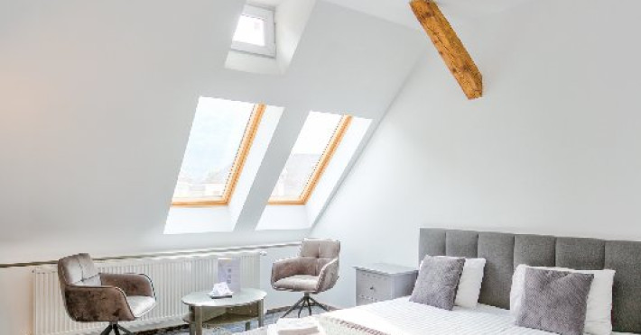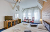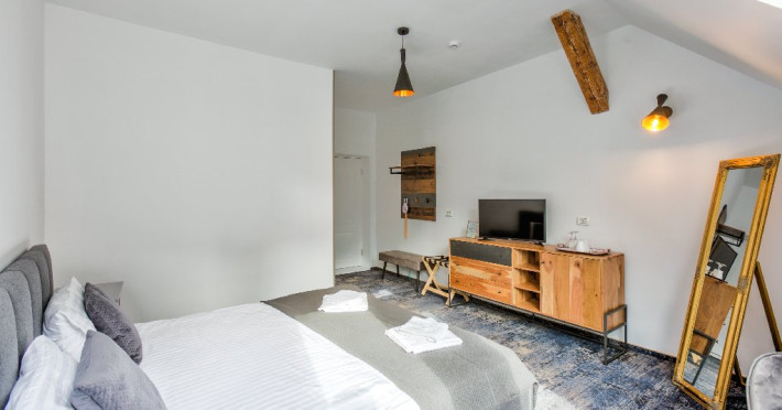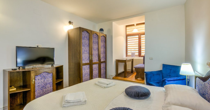 Apartamentul deluxe este format dintr-un dormitor cu pat matrimonial si un living cu canapea extensibila dubla. De asemenea beneficiaza in plus de :