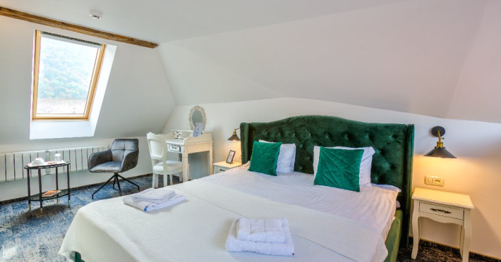 Istoria continua si astazi cu 24 de camere reinventate in spiritul epocii de odinioara, avand totusi in prim plan confortul oaspetilor nostri: telefon in camera, frigobar, televizor lcd, internet wifi, receptie permanenta, serviciu de spalatorie / calcatorie, seif la receptie si in camere, sala conferinte cu o capacitate de 25 locuri, salon mic dejun.