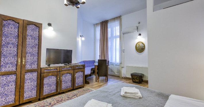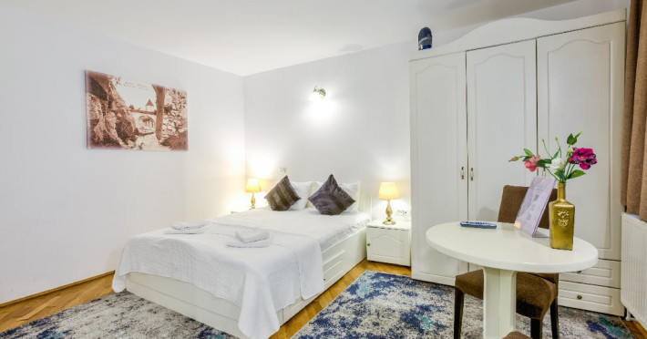 Apartamentul standard este format dintr-un dormitor cu pat matrimonial si un living cu canapea extensibila. De asemenea beneficiaza in plus de :