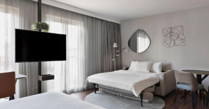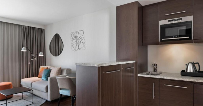 Residence Inn by Marriott Munich City East este un hotel de 4 stele care oferă camere elegante, cu aer condiționat, ferestre izolate fonic și podea elegantă de lemn. Acestea oferă mașină de spălat vase, ușcător de păr și o canapea extensibilă.