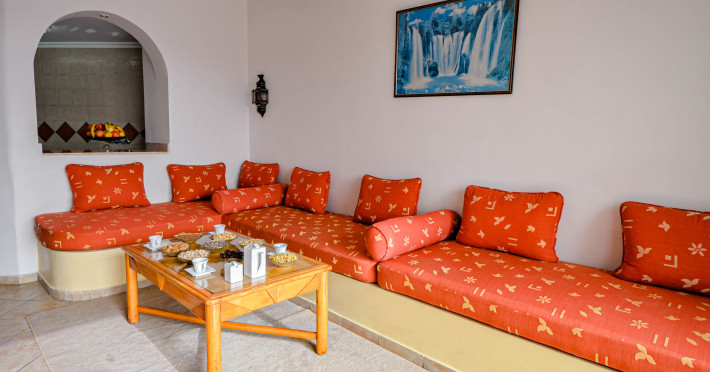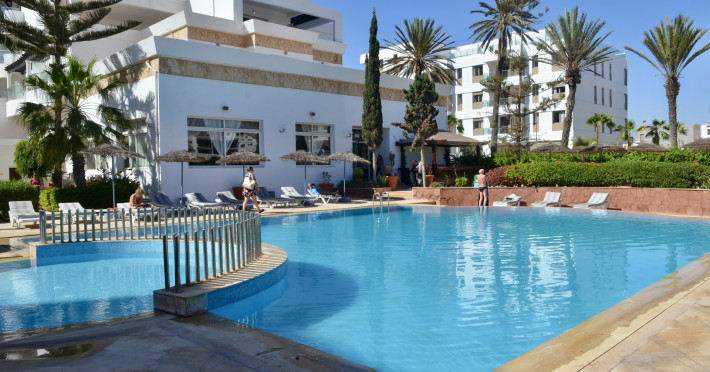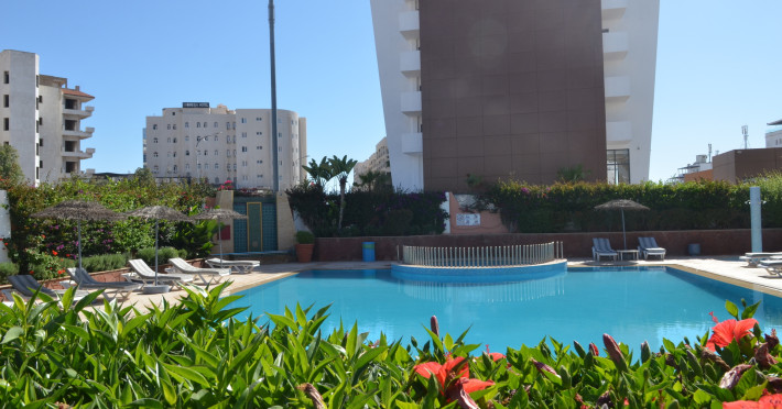 The accommodation Residence Intouriste has a 24h reception, Wi-Fi, parking spaces as well as a TV lounge. In the outdoor area you will find a garden as well as a pool (open all year), where sun loungers are available for free. For children there is also a children's pool. Furthermore, outside you can find a sun terrace. You can store your valuables in the safe, and your luggage in the hotel`s storage room. The hotel requires that all guests pay a deposit upon arrival. Catering Breakfast is offered from the buffet. The drinks menu of the hotel includes water.