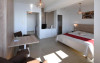 Apartamentele moderne sunt dotate cu bucătărie complet utilată, balcon sau terasă cu vedere spre mare, aer condiționat și TV prin satelit. Rezidenții beneficiază de acces la piscina in aer liber cu șezlonguri și umbrele, precum și la plaja privată cu nisip fin, aflată la doar cațiva pași de complex.