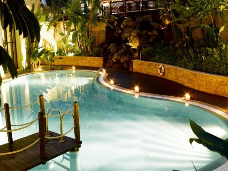 Facilitati hotel: piscine, restaurante, teren de tenis, cada cu hidromasaj, teren de minigolf, centru spa, baie turceasca, piscina interioara, aer conditionat