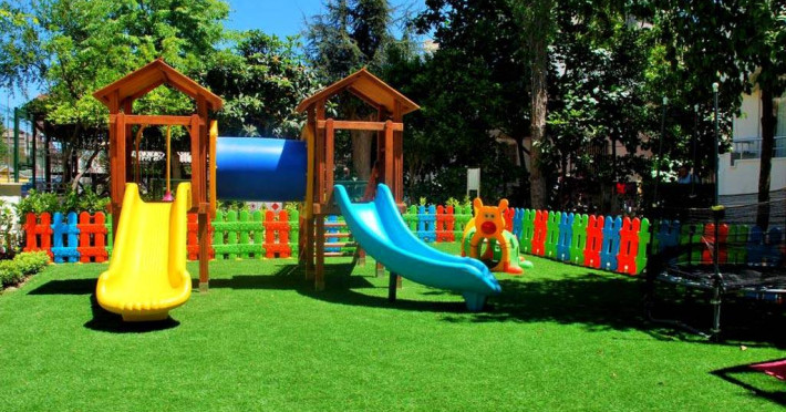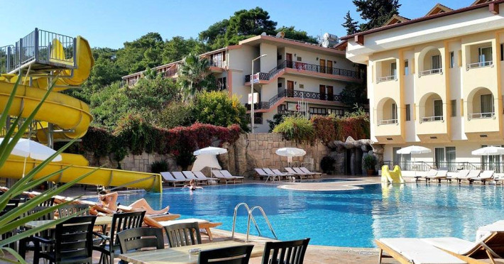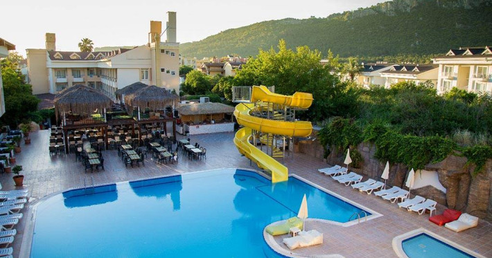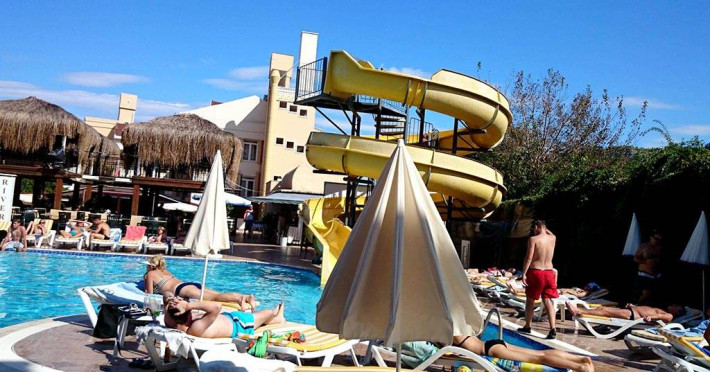 Copiii se pot distra la piscina special amenajată, prevăzută cu tobogane cu apă.