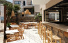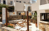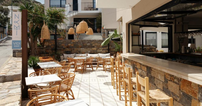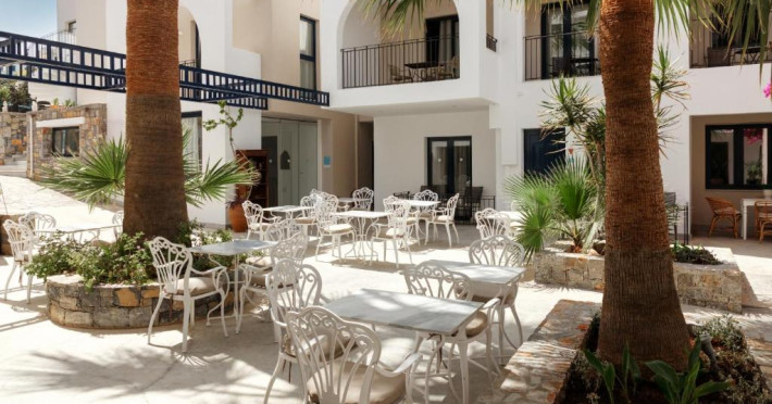 Restaurantul principal servește preparate din bucătăria grecească și internațională, iar barul de la terasă este locul perfect pentru un cocktail la apus. In imediata apropiere se găsesc numeroase taverne tradiționale grecești și magazine.