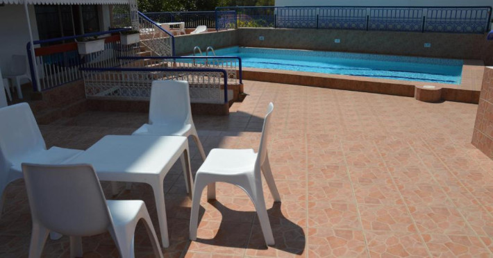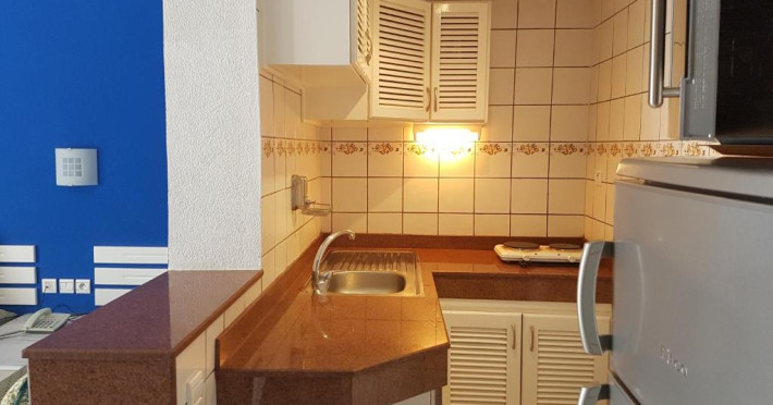 Camerele și apartamentele spațioase sunt dotate cu bucătărie complet utilată, balcon și zonă de relaxare, fiind ideale atat pentru familii, cat și pentru sejururi prelungite. Complexul dispune de două piscine exterioare, inconjurate de șezlonguri și umbrele, precum și de o grădină tropicală bine intreținută.
