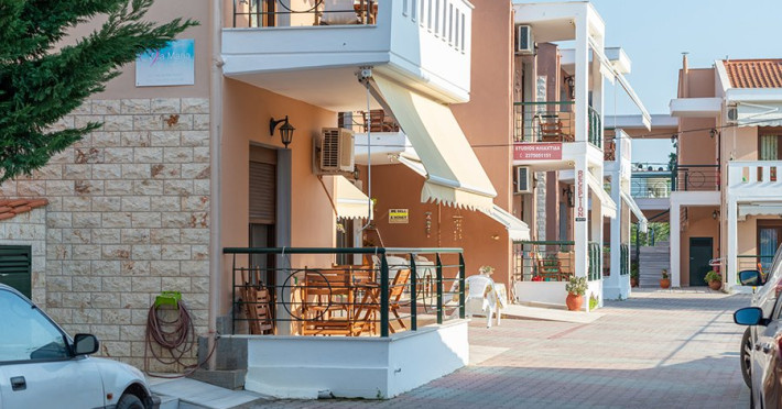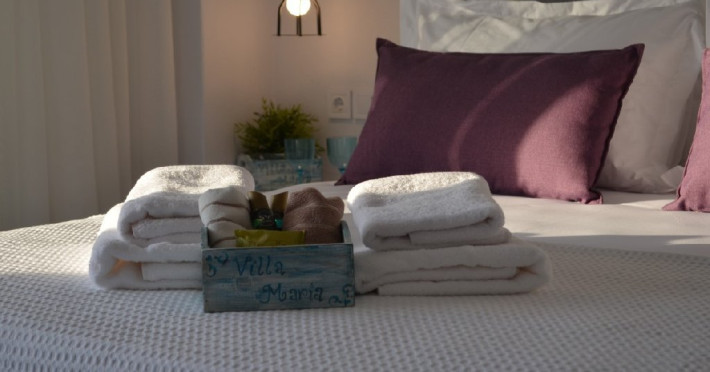 Localizare: Resortul Vila Maria se afla in centrul statiunii Toroni.Facilitati camere: Toate suitele & bungalow-urile & studiourile au pat matrimonial, AC, TV, WiFi, seif, frigider, uscator de par, chicineta, cuptor cu microunde, fierbator, baie cu dus si balcon/veranda.