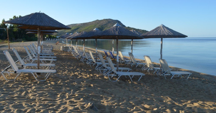 Fiecare Bungalow are gradina proprie si se afla la doar 200 m de plaja din Toroni si la 150 m de cladirea principala si de receptie.
