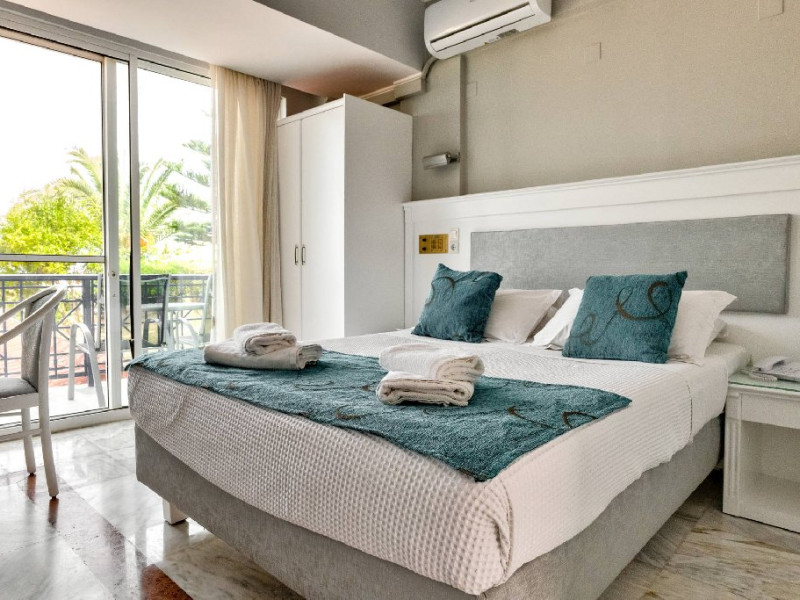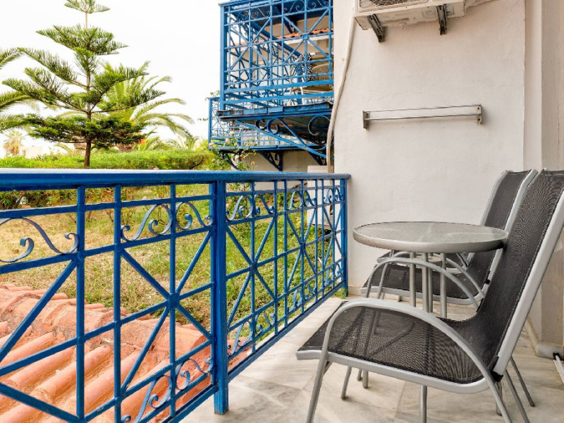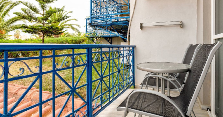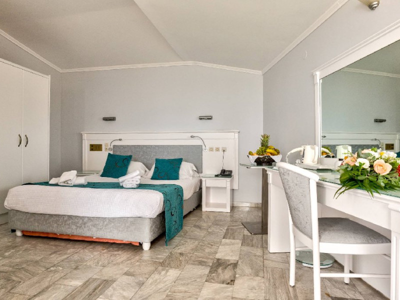 - Camerele sunt dotate cu: baie (cada sau dus, WC, uscator de par), aer conditionat, frigider, TV-sat, telefon, aparat pentru cafea/ceai, seif si balcon cu mobilier de gradina.