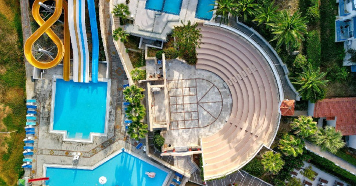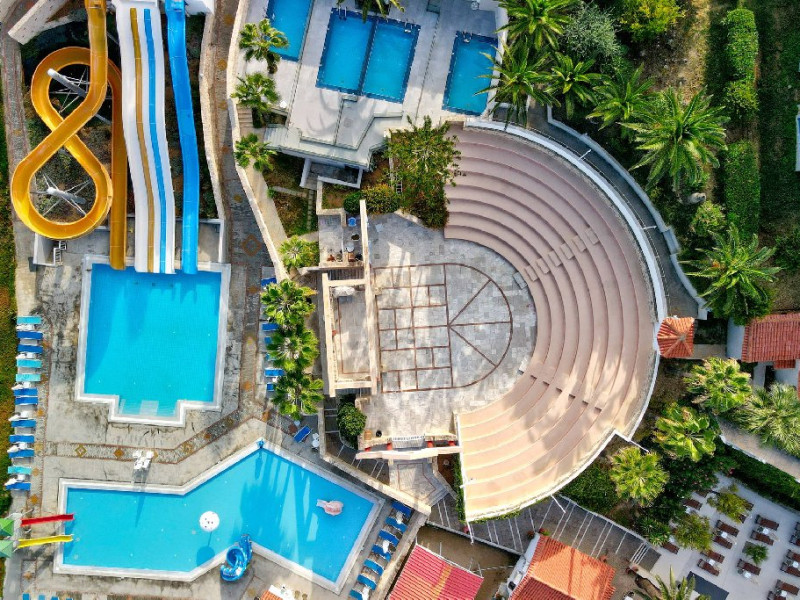 Puncte forte ale oferteiHotel confortabil, cu program All Inclusive, dotat cu parc acvatic cu 7 tobogane si numeroase activitati pentru copii si adulti. Recomandat in special familiilor - camerele renovate si facilitatile variate creeaza conditii excelente pentru vacante in familie. Bucataria apreciata si serviciile de calitate sunt un plus important.