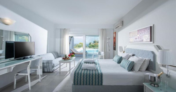 Camerele și suitele de la Rethymno Mare au aer condiționat, TV Samsung Smart IP TV de 43" și canale prin satelit, frigider, seif, telefon, acces gratuit la internet Wi-Fi (in majoritatea camerelor), baie (cada / cabina de dus), uscator de par (in cele mai multe camere - contra cost), frigider, set pentru preparare ceai / cafea (ceainic, cupe), balcon/terasa, halate de baie și papuci.