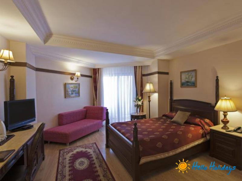 Hotelul Delphin Palace, este situat la malul marii, in Lara, Antalya, oferind servicii spectaculoase pentru turistii sai. Camerele sunt spatioase, dotate cu mobilier din lemn de culoare inchisa, si accente de decor turcesti, toate avand balcon. Toate camerele dispun de Wi-fi gratuit, TV prin satelit, mini-bar (contra-cost) si cosmetic de baie. Exista un restaurant principal si multe alte tipuri de restaurante a la carte unde puteti servii din bucataria vasta a mapamondului. Centru de wellness include un spa cu servicii complete si centru de fitness bine echipat.